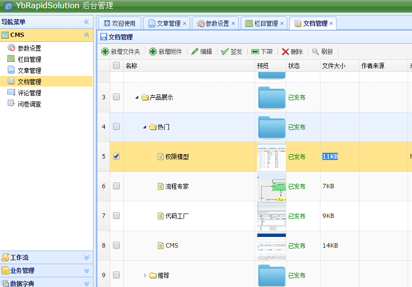 文档管理:支持草稿、下架、签发功能,在线编辑器上传的内容同样均可进行管理。